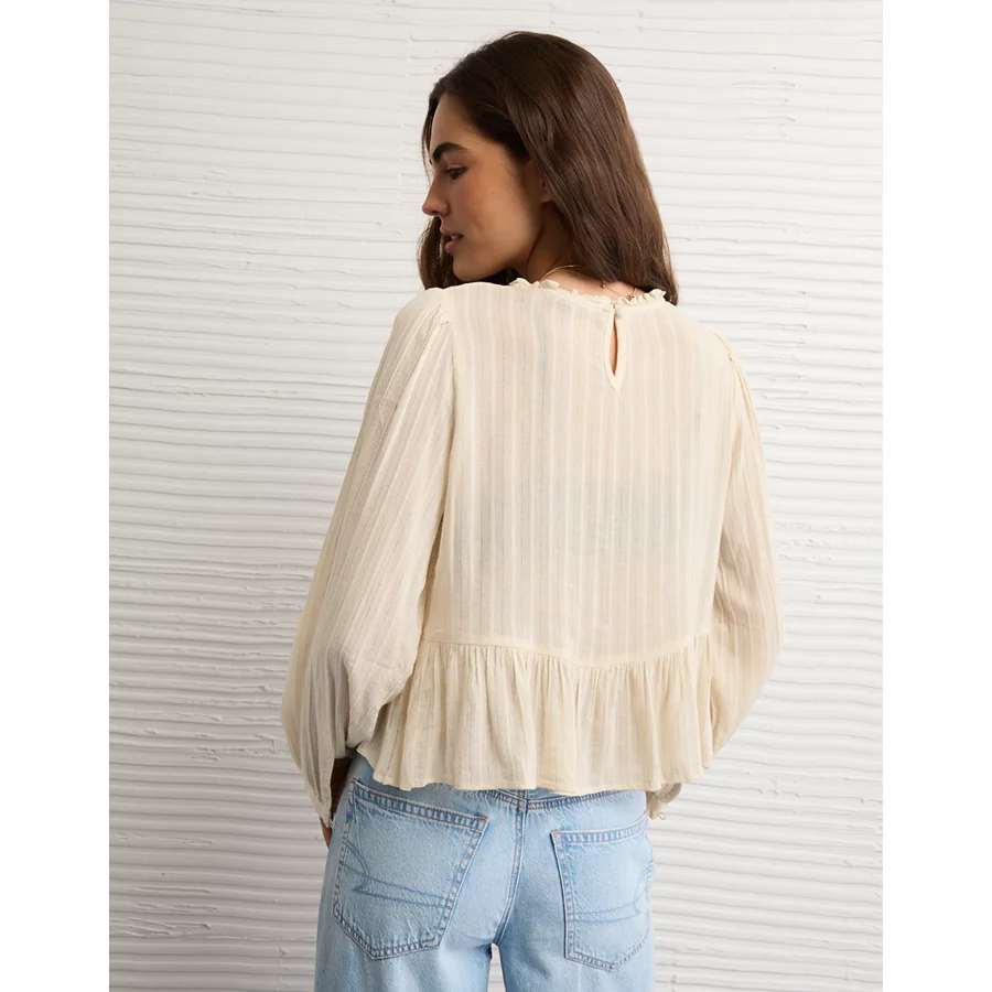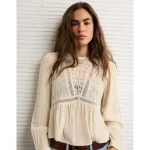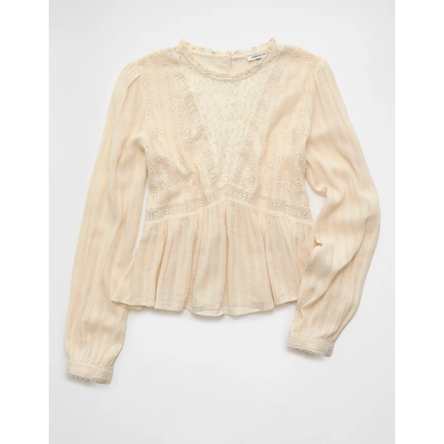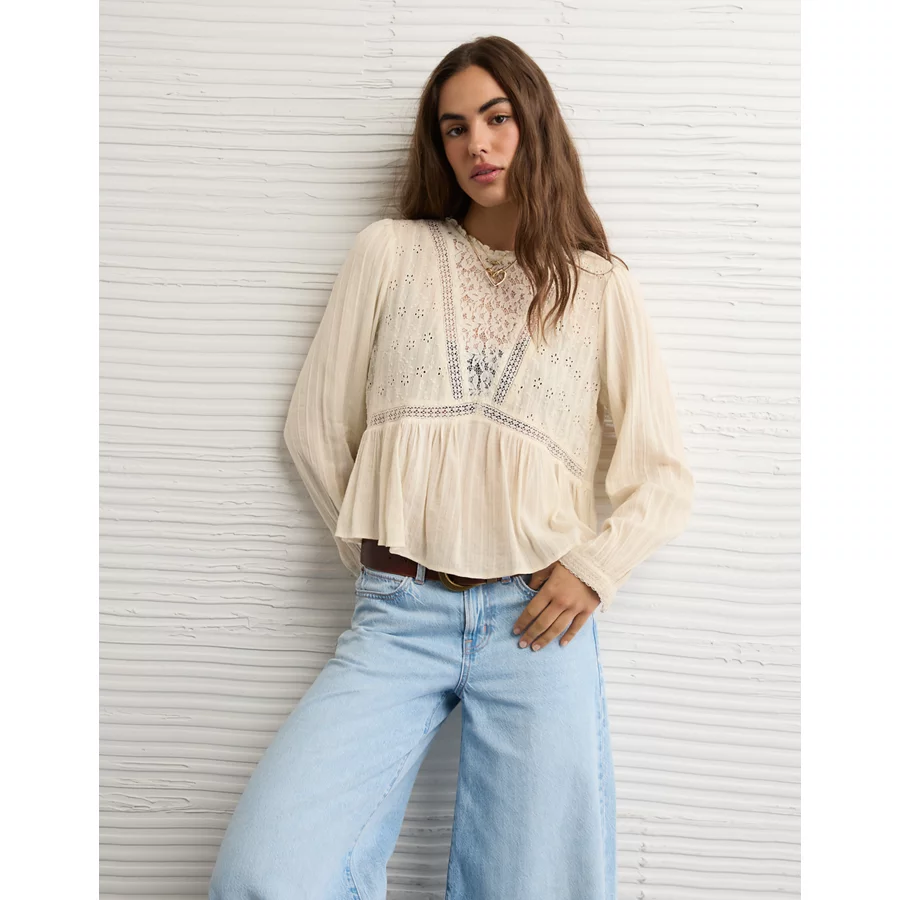 AE High Neck Lace Blouse – Cream