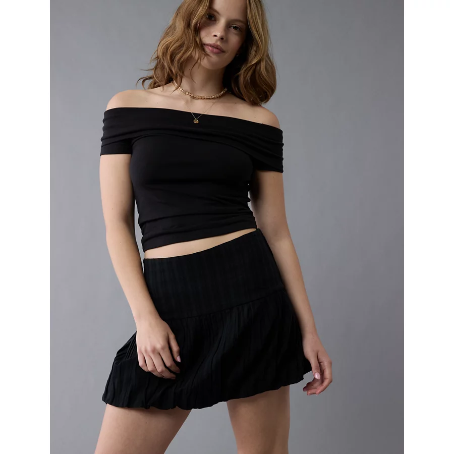 AE High-Waisted Smocked Bubble Skirt – Black