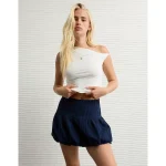 AE High-Waisted Smocked Bubble Skirt – Navy