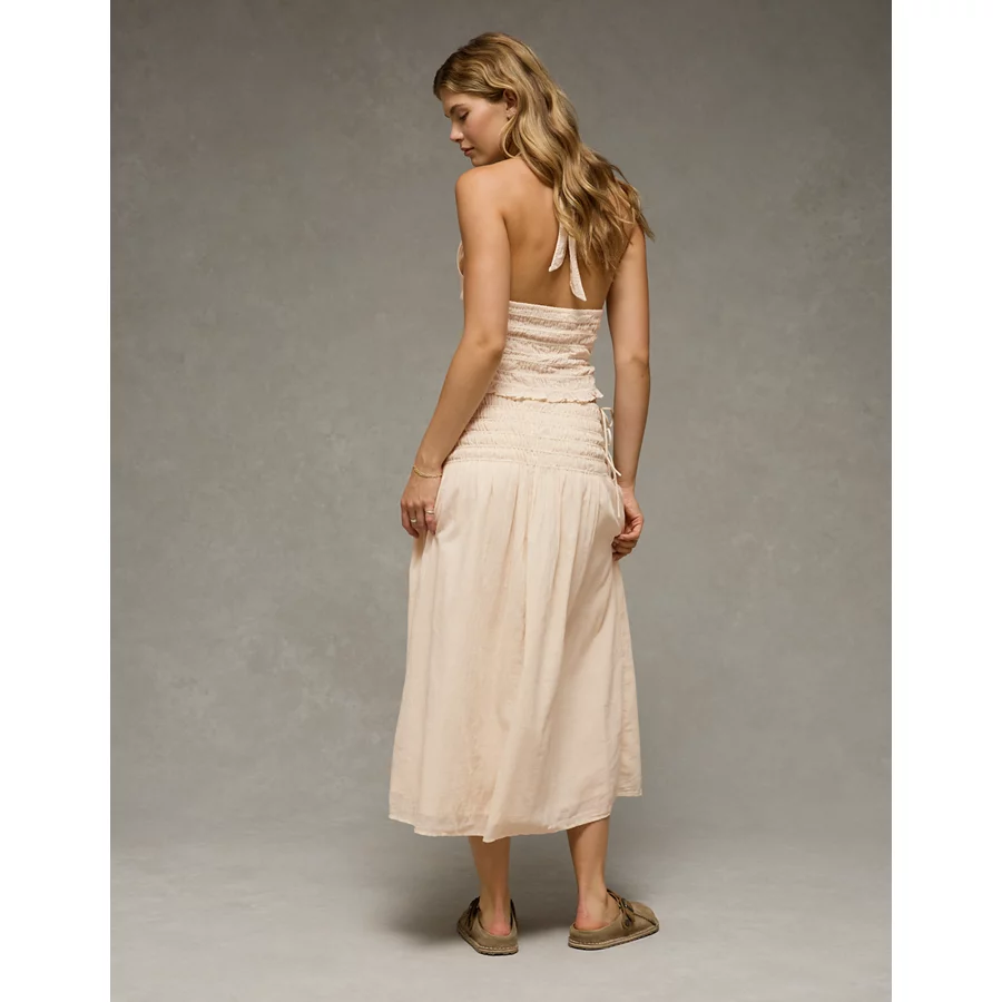 AE High-Waisted Tie Side Maxi Skirt – Cream