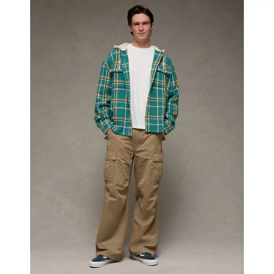 AE Hooded Flannel Shirt – Teal