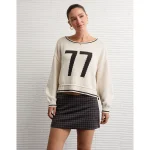 AE It Knit Low-Rise Pleated Plaid Skort - Grey