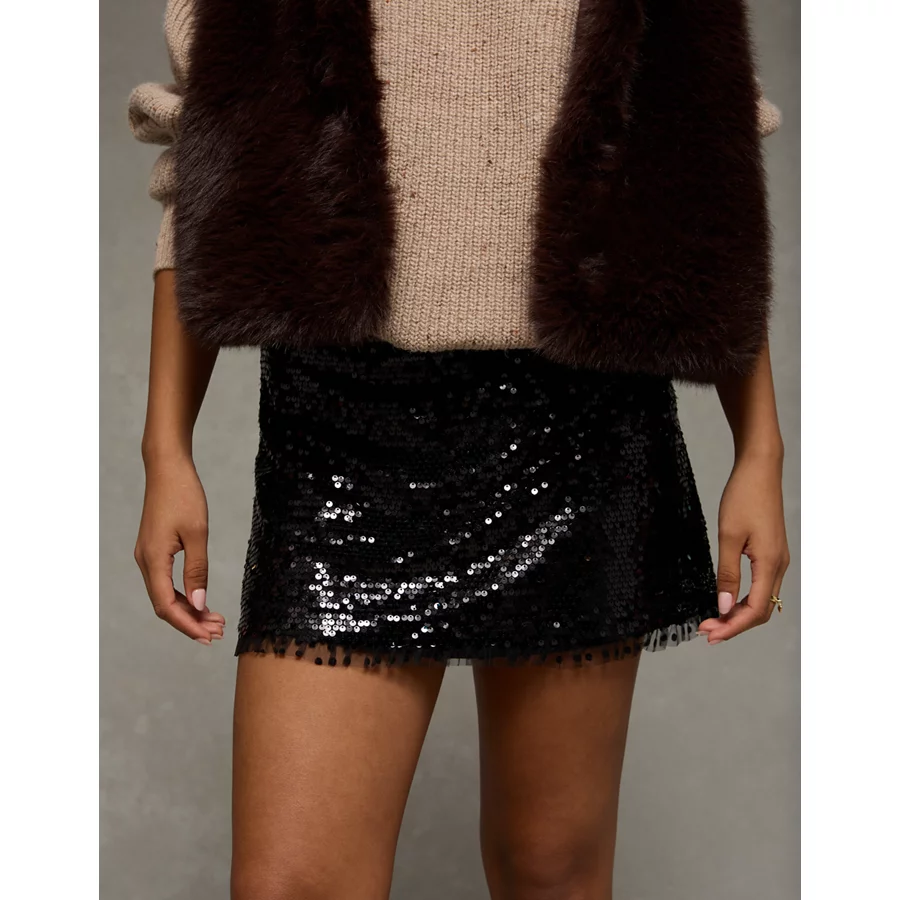 AE It Knit Sequined Mini Slit Skort – Silver Shadow