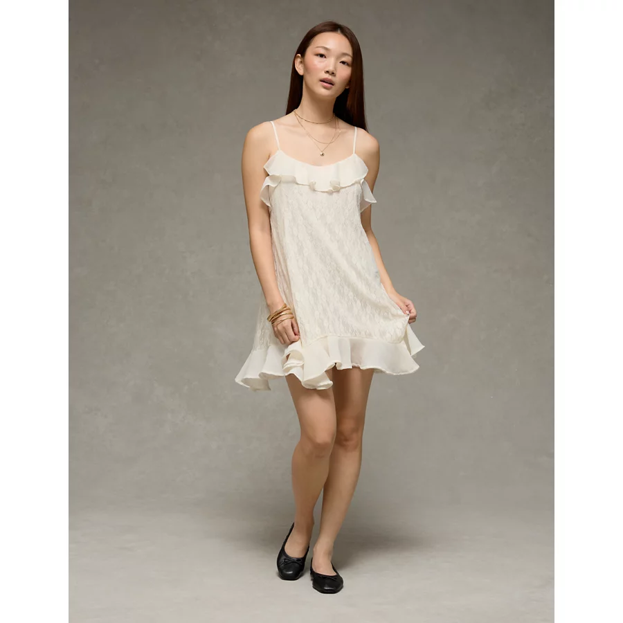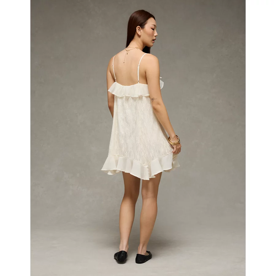 AE Lace Handkerchief Hem Ruffle Mini Dress – Cream