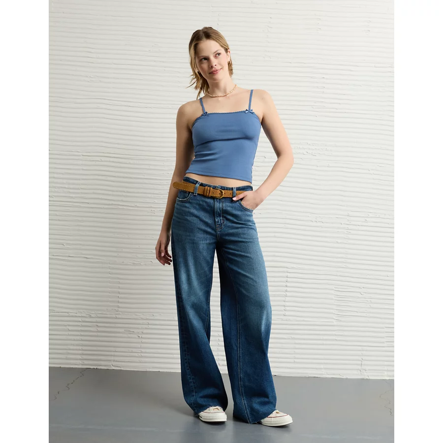 AE 8″ Dreamy Drape Stretch Low-Rise Baggy Jort – White