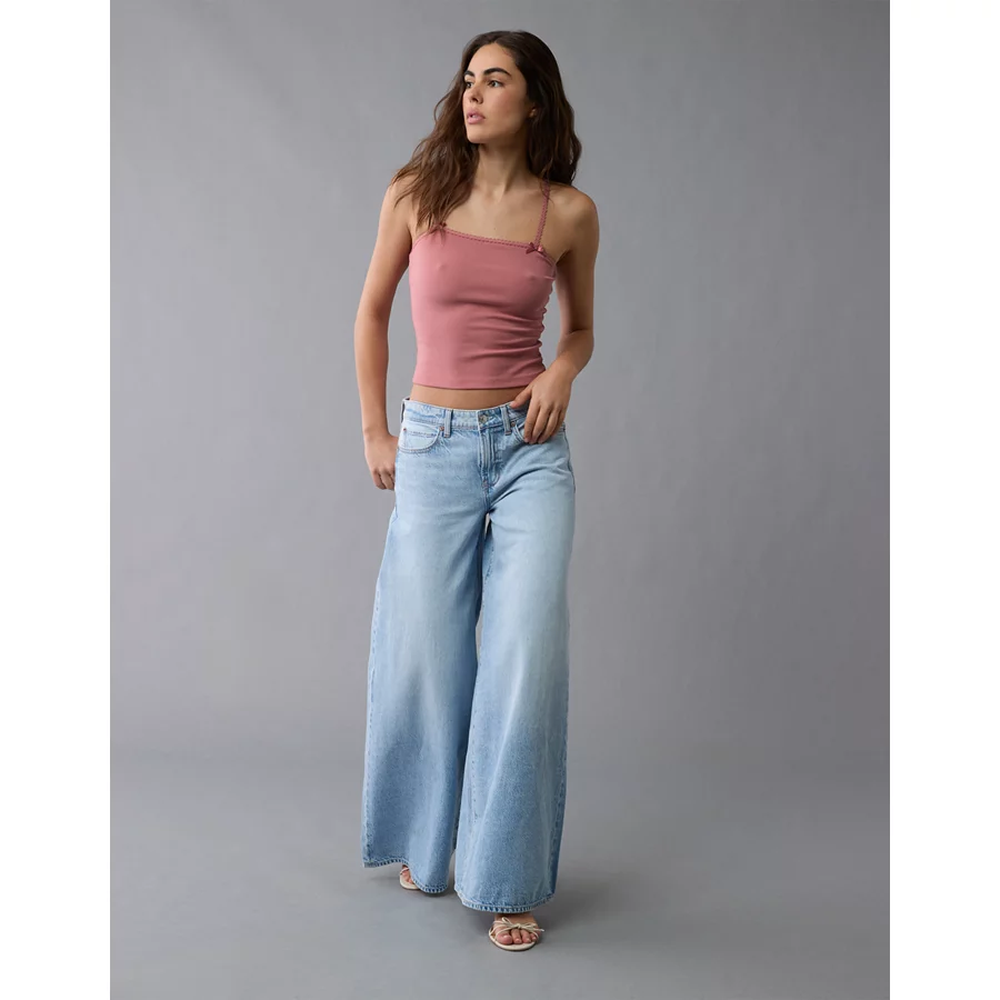 AE 8″ Dreamy Drape Stretch Low-Rise Baggy Jort – Medium Bright Indigo