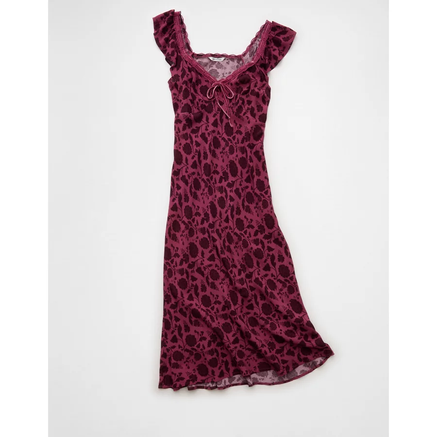AE Lace Trim Midi Dress – Burgundy