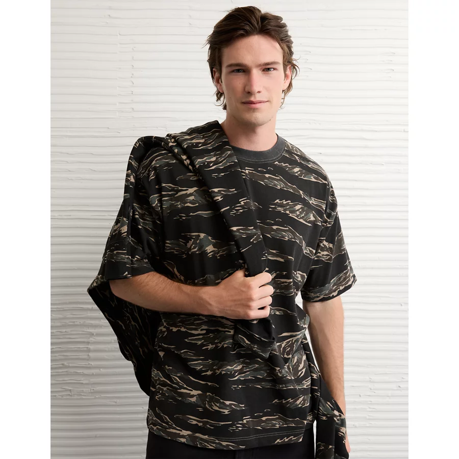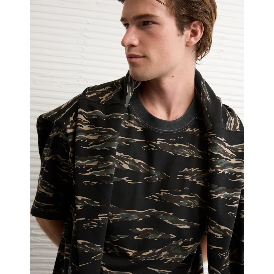 AE Laidback Luxe Heavyweight Oversized Camo T-Shirt – Crew Green
