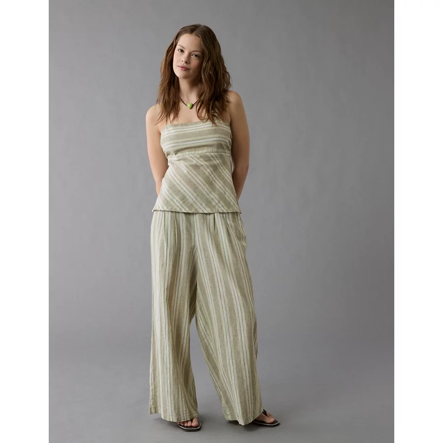 AE Linen-Blend High-Waisted Wide-Leg Pant – Olive