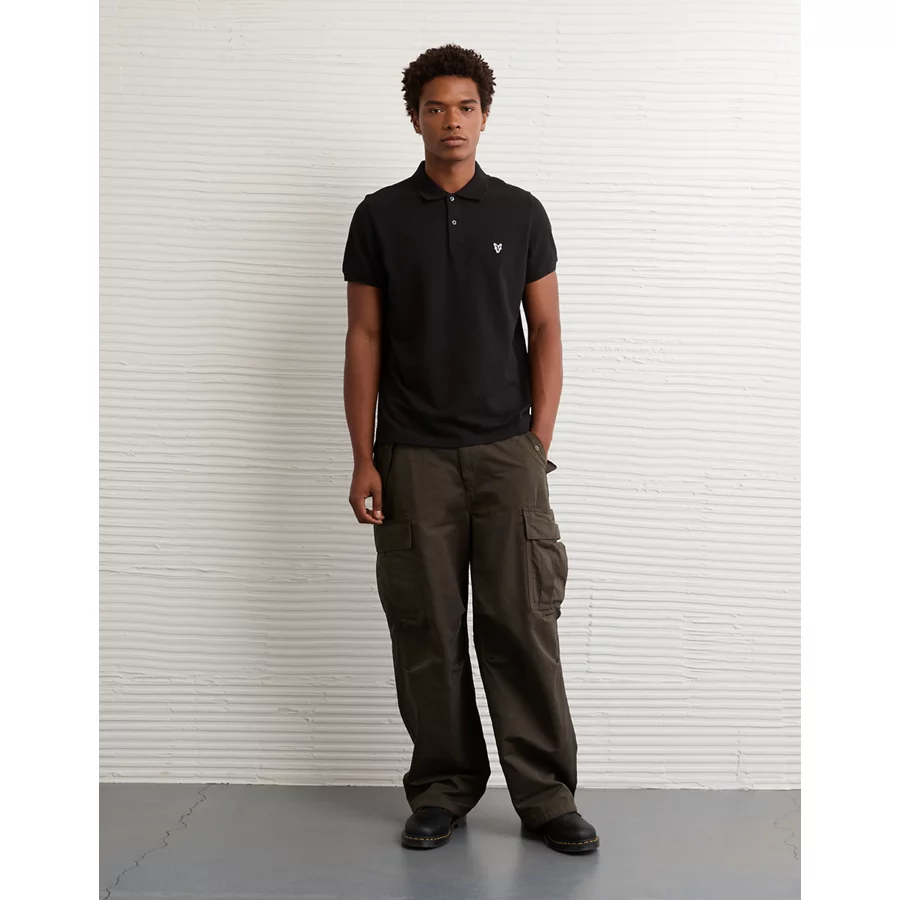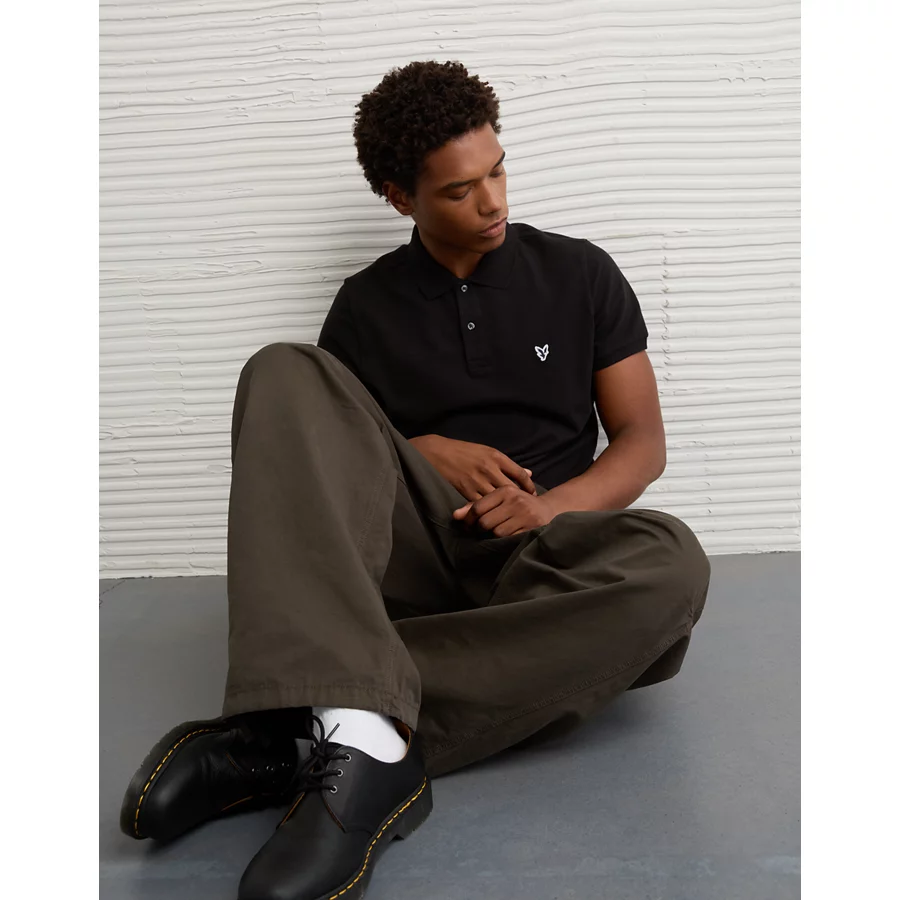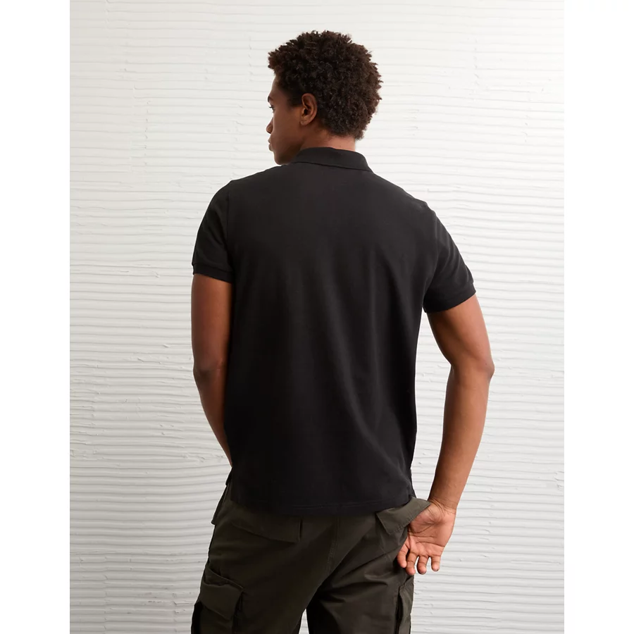 AE Lived-In Slim Fit Pique Polo Shirt – Black