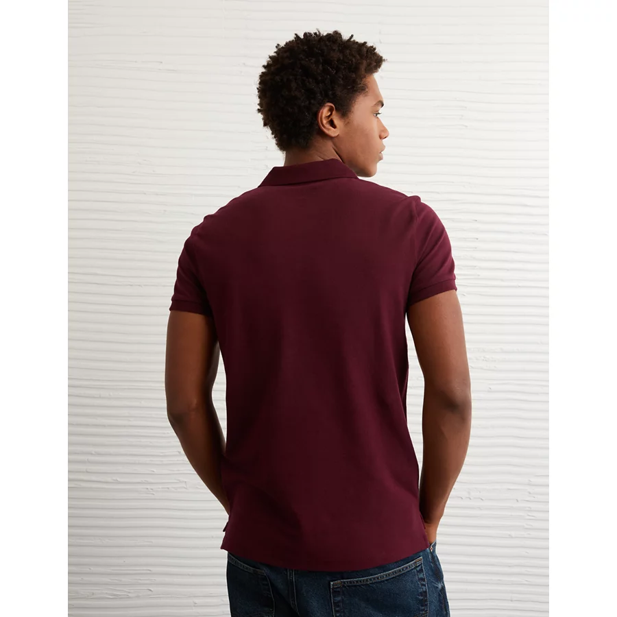 AE Lived-In Slim Fit Pique Polo Shirt – Burgundy