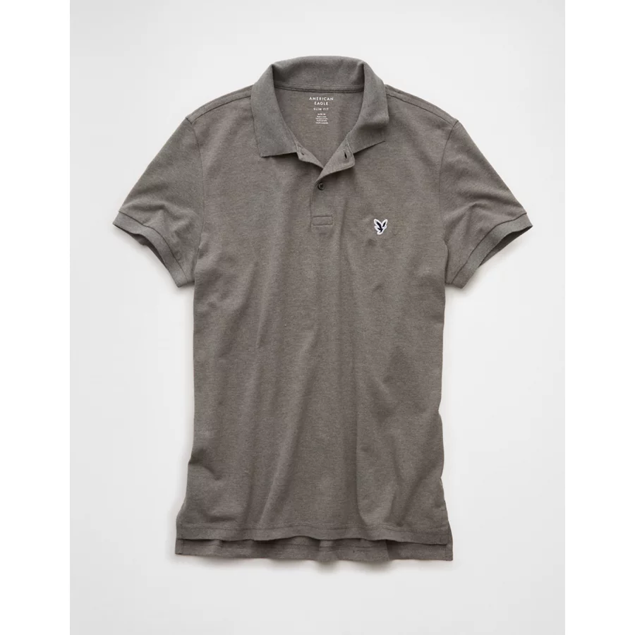AE Lived-In Slim Fit Pique Polo Shirt – Charcoal