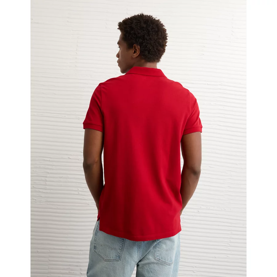 AE Lived-In Slim Fit Pique Polo Shirt - Burgundy
