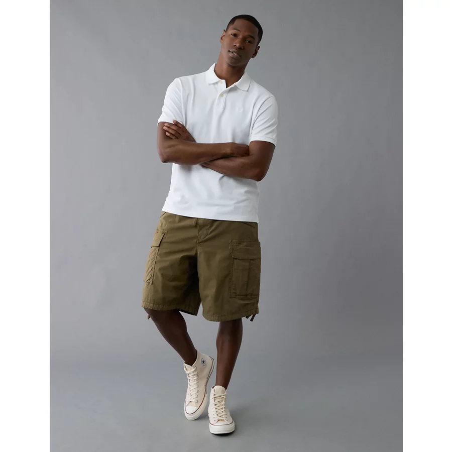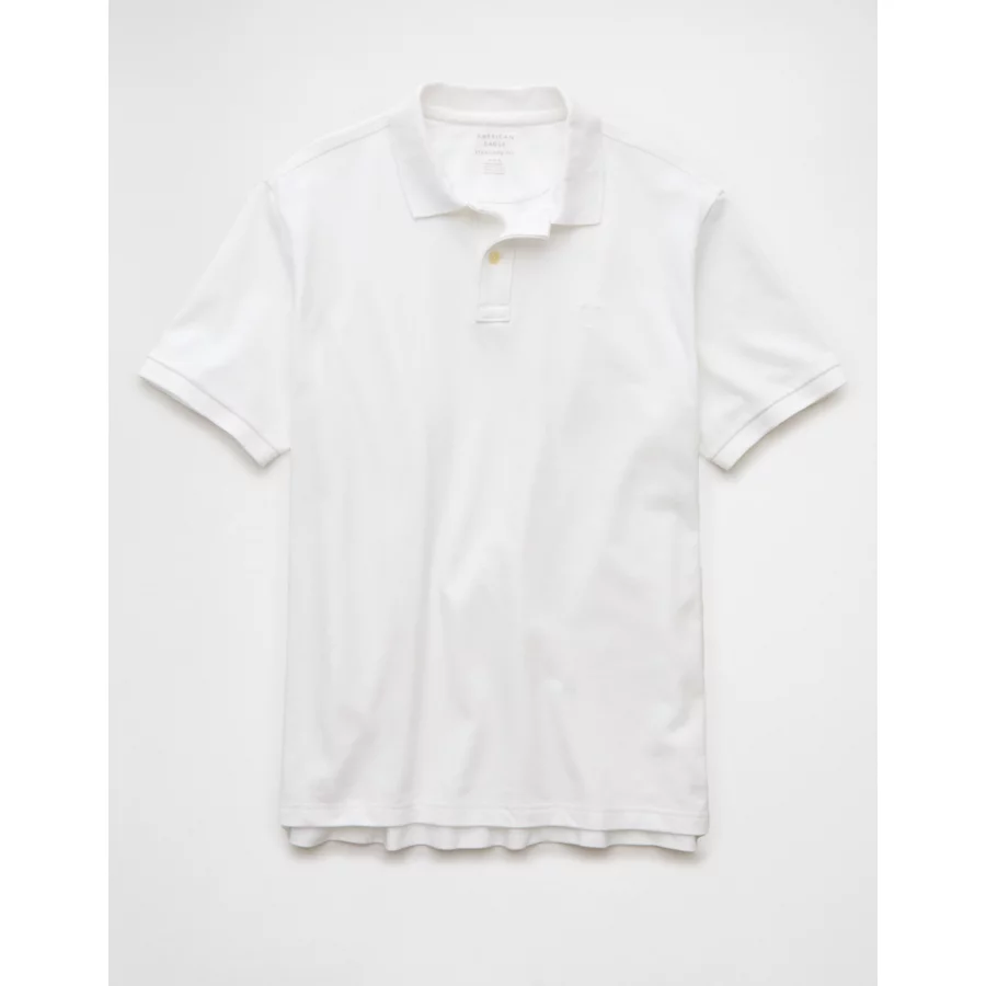 Super soft jersey with added stretchPolo collar with button placketAE 24/7 logoThis is Real Good: Made with the planet in