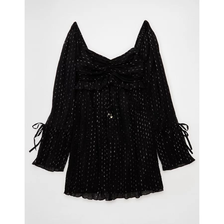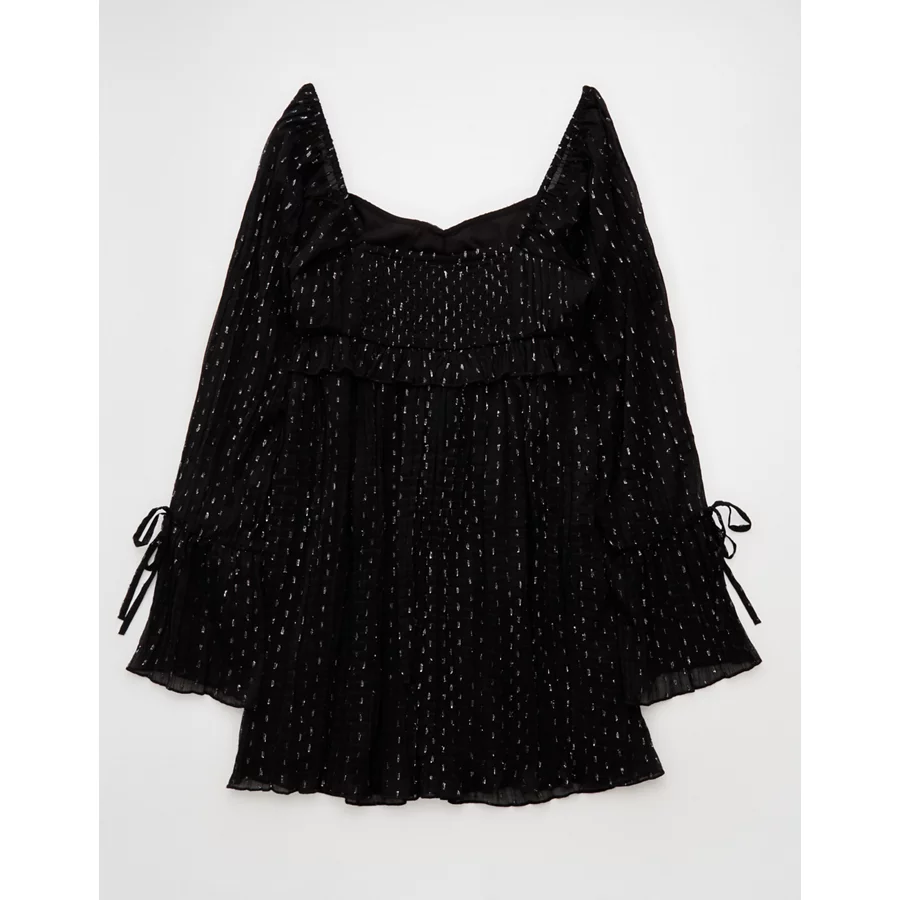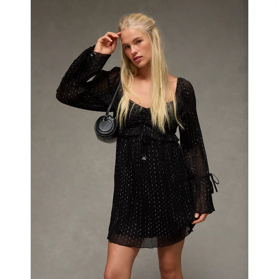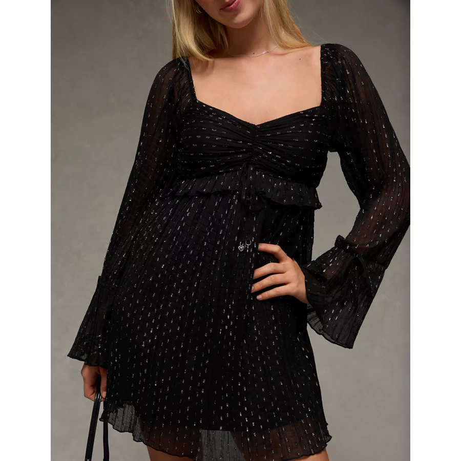 AE Long Sleeve Babydoll Mini Dress – Black