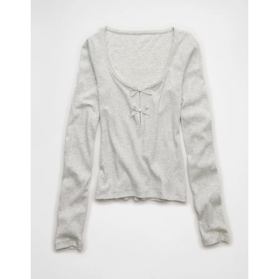 AE Long Sleeve Bow T-Shirt – Grey