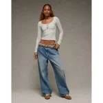 AE 11″ Dreamy Drape Stretch High-Waisted Jort – Light Tinted Wash