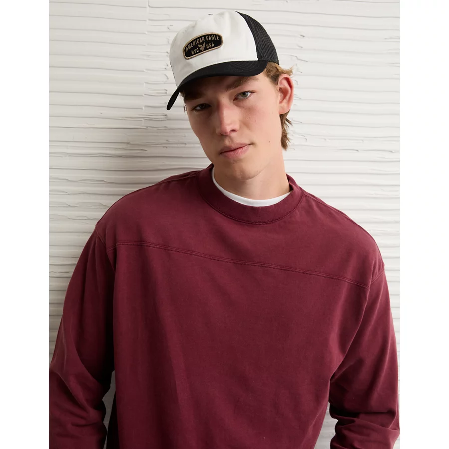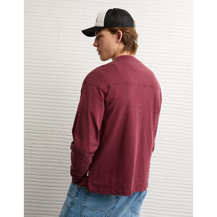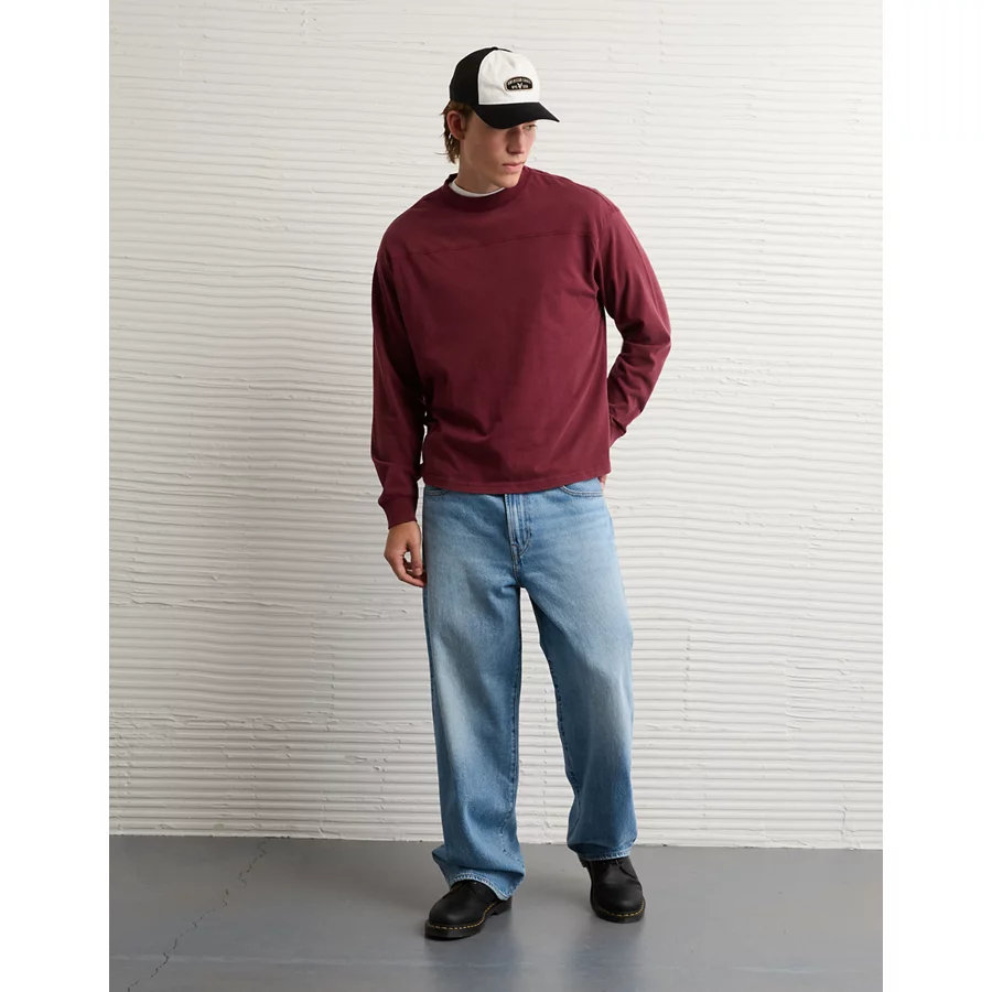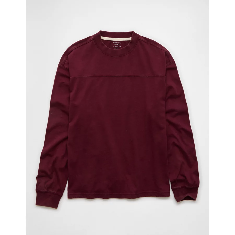 AE Long-Sleeve Boxy Sueded Jersey T-Shirt – Maroon
