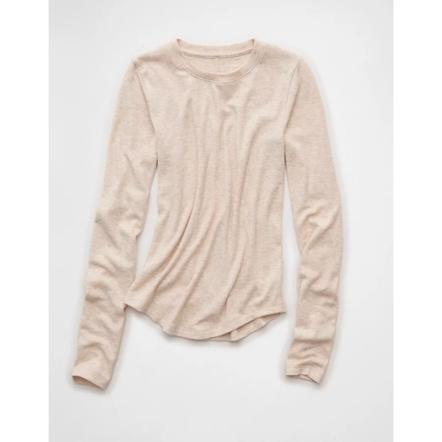 AE Long Sleeve Cozy Crew Neck T-Shirt – Oatmeal