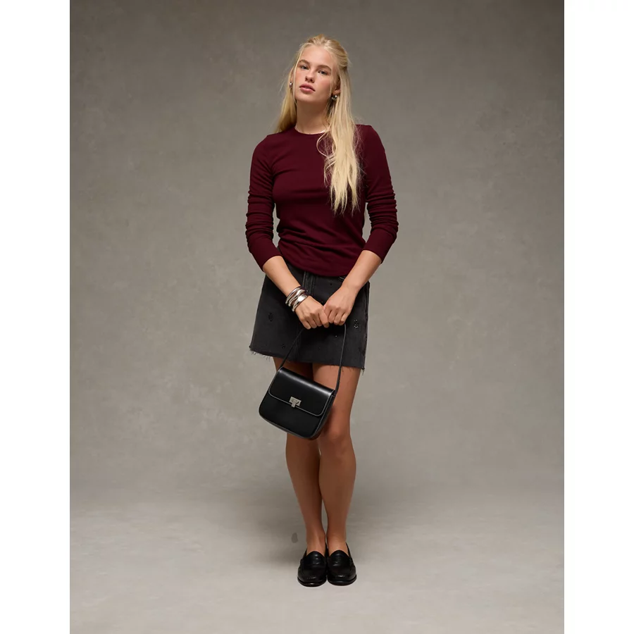 AE Long Sleeve Cozy Crew Neck T-Shirt – Preppy Red