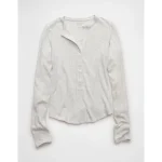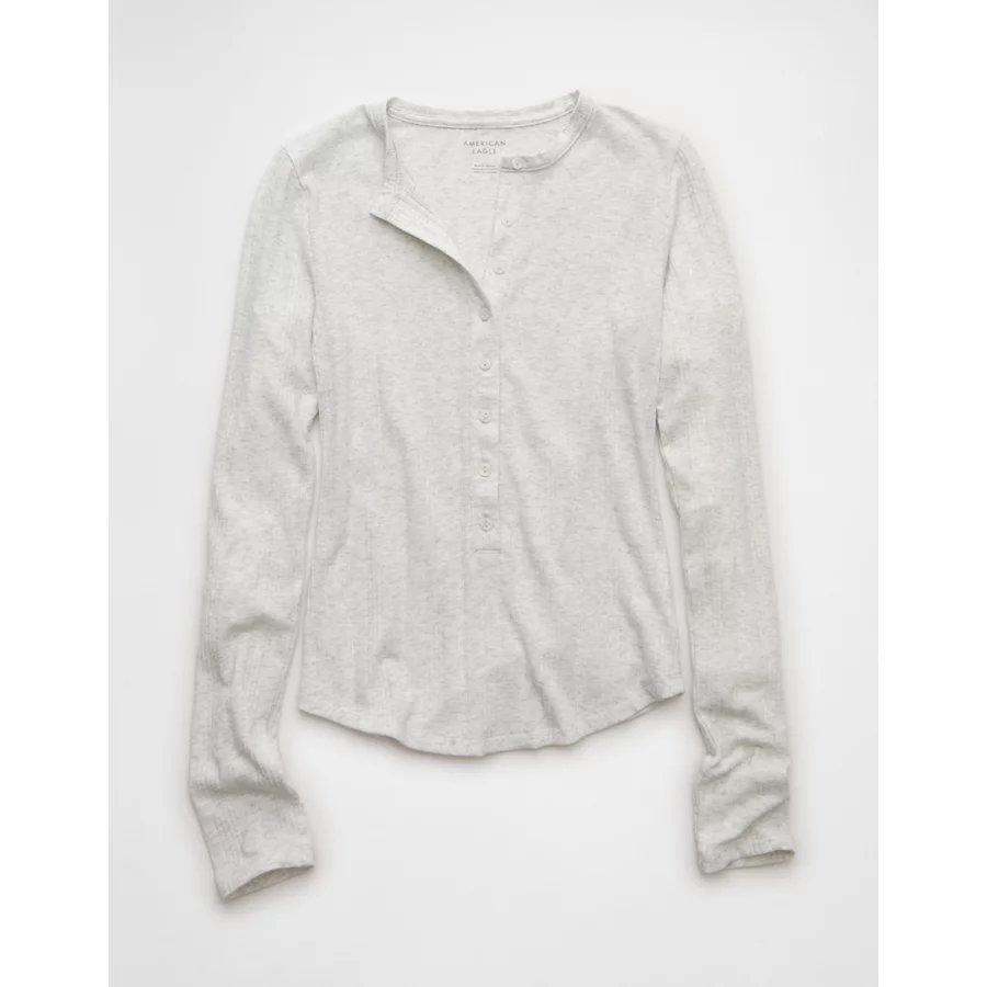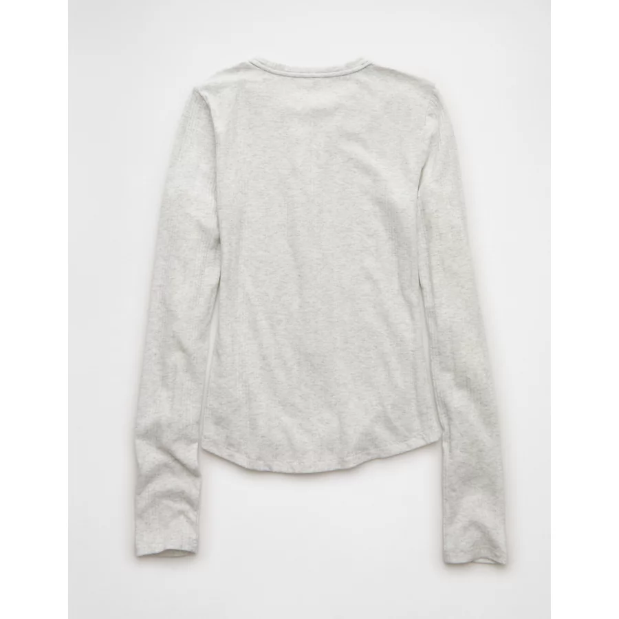AE Long Sleeve Henley T-Shirt – Light Heather Gray
