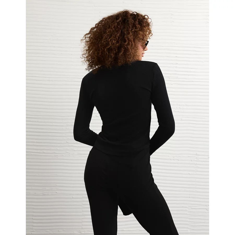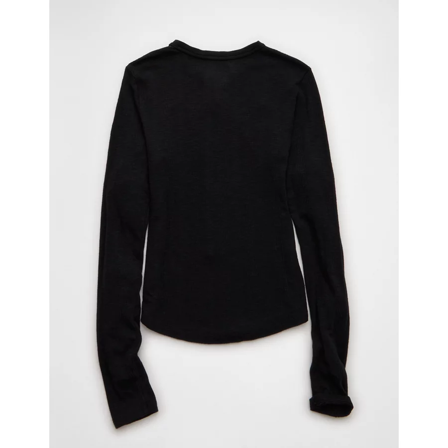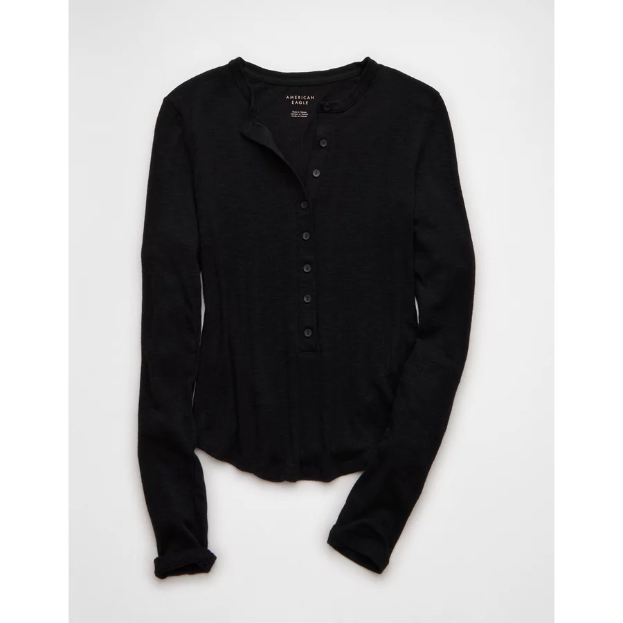 AE Long Sleeve Henley T-Shirt – True Black