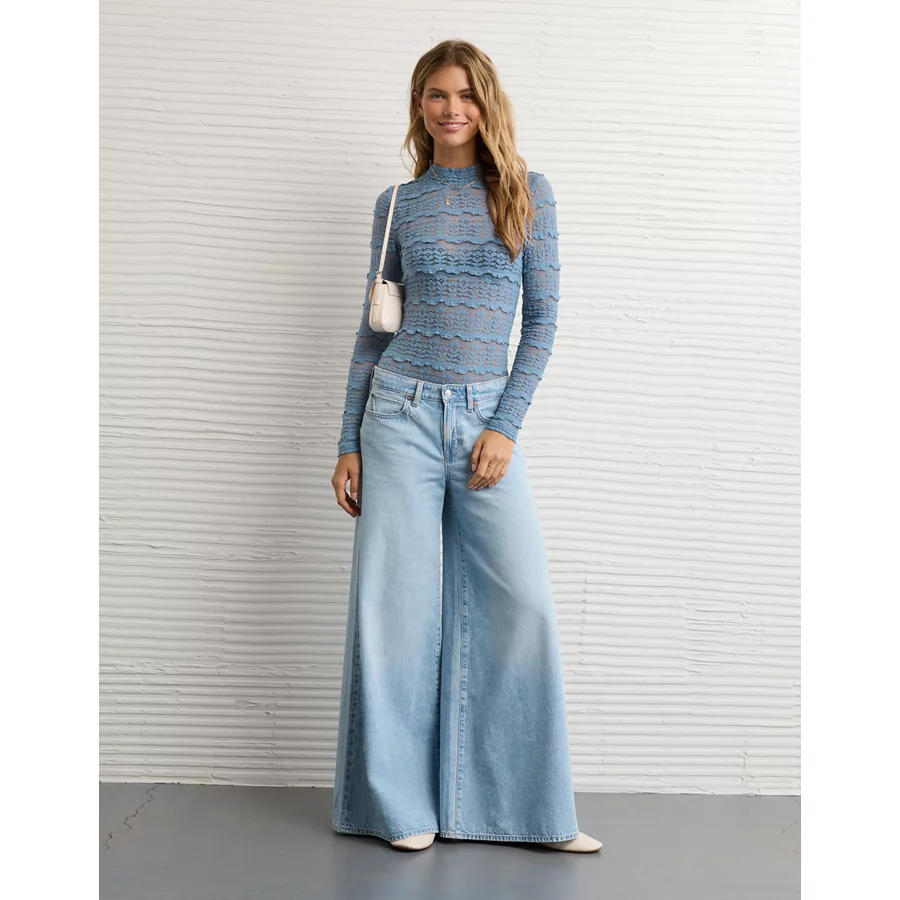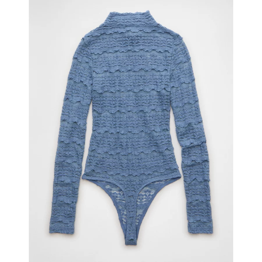 AE Long Sleeve Mock Neck Lace Bodysuit – Powder Blue