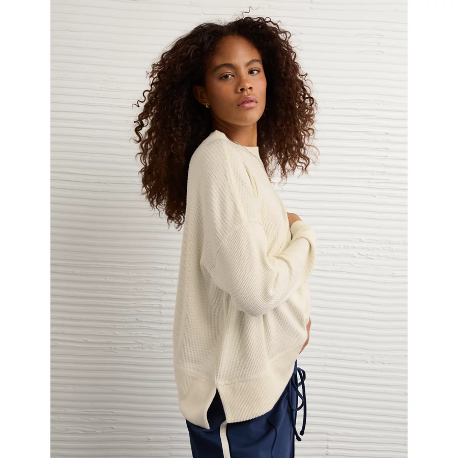 AE Long Sleeve Plush Crew Neck Top – Chalk
