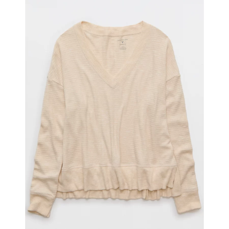 AE Long Sleeve Plush V-Neck Top – Oatmeal