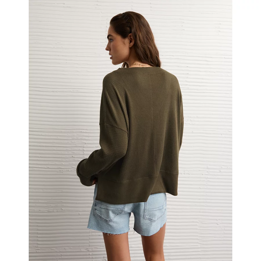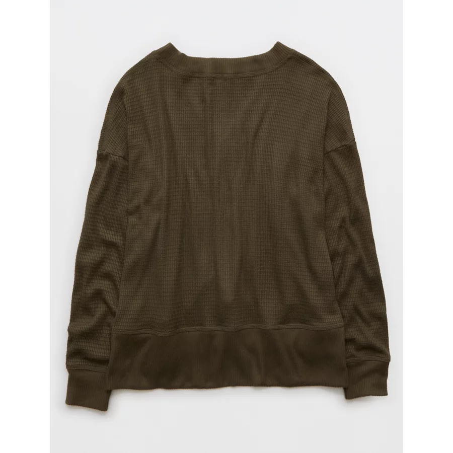 AE Long Sleeve Plush V-Neck Top – Olive