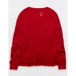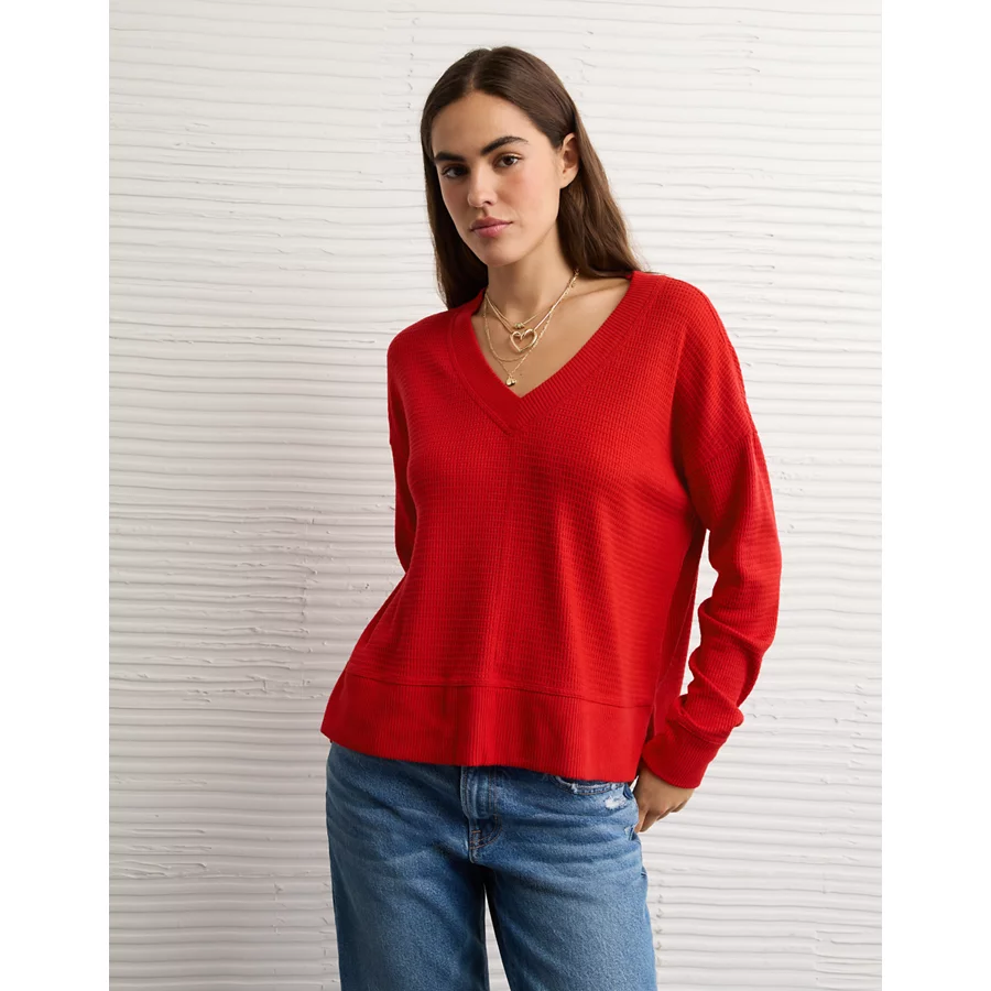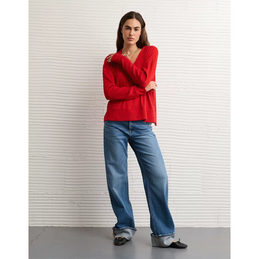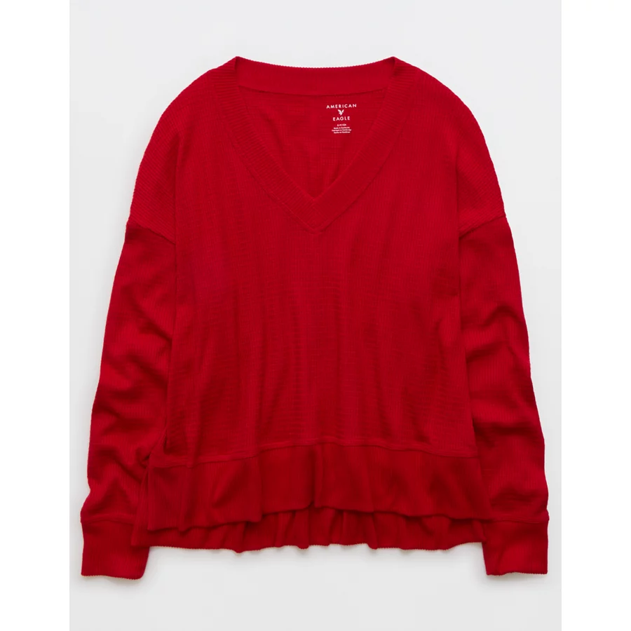 AE Long Sleeve Plush V-Neck Top – Ruby Kiss