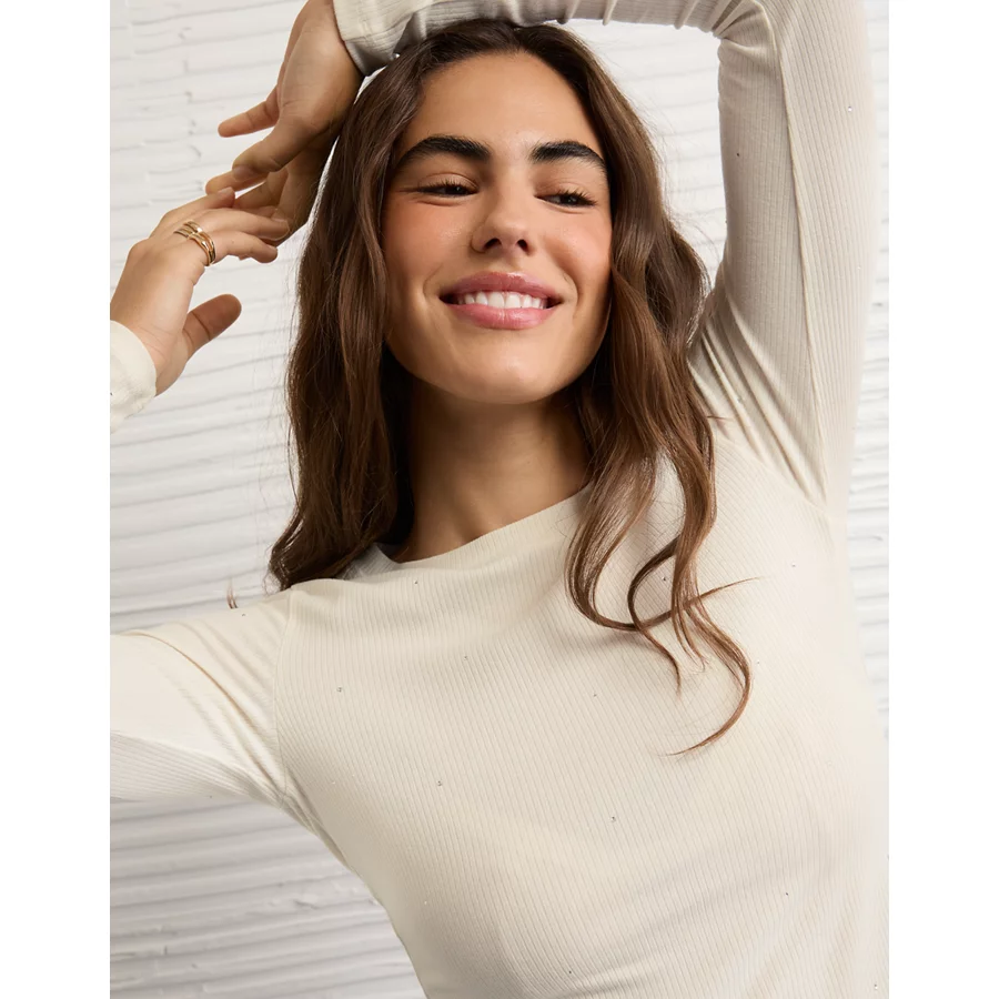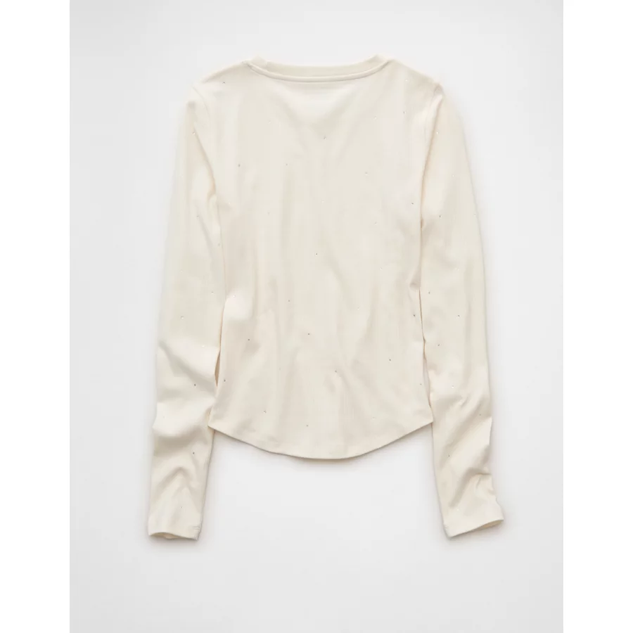 AE Long Sleeve Rhinestone T-Shirt – Chalk