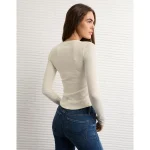AE Long Sleeve Smocked Babydoll Blouse - Cream