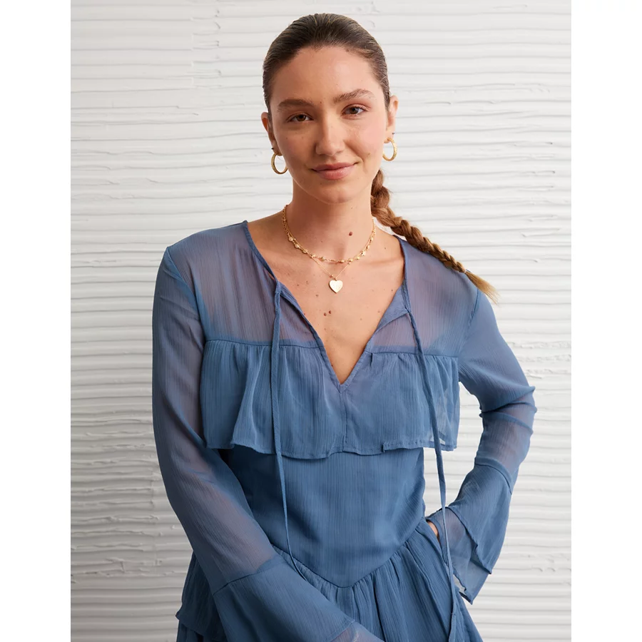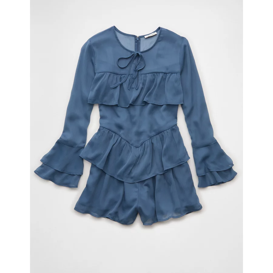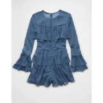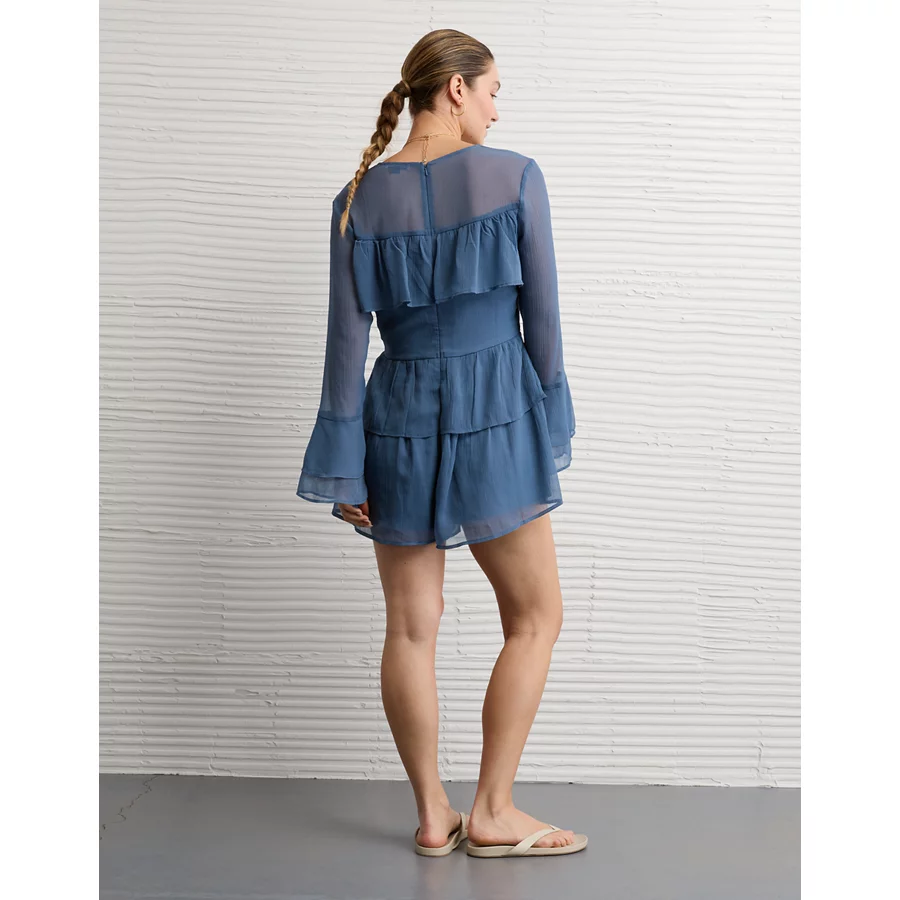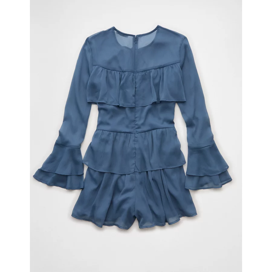 AE Long-Sleeve Ruffle Romper – Navy