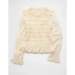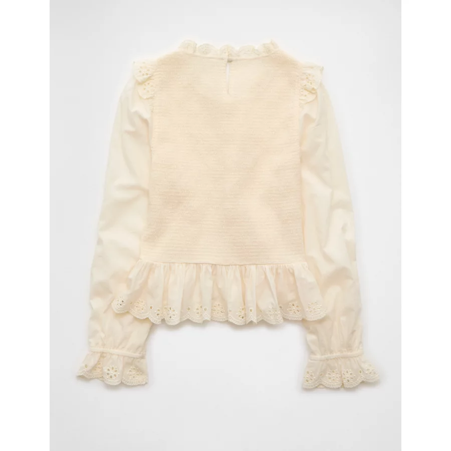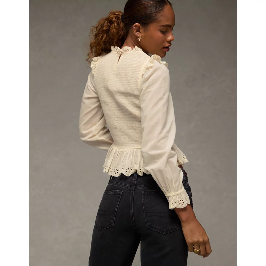 AE Long Sleeve Smocked Babydoll Blouse – Cream