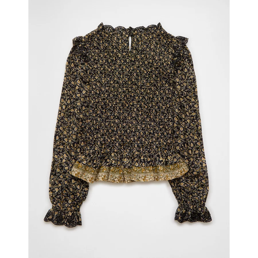 AE Long Sleeve Smocked Babydoll Blouse – Multi