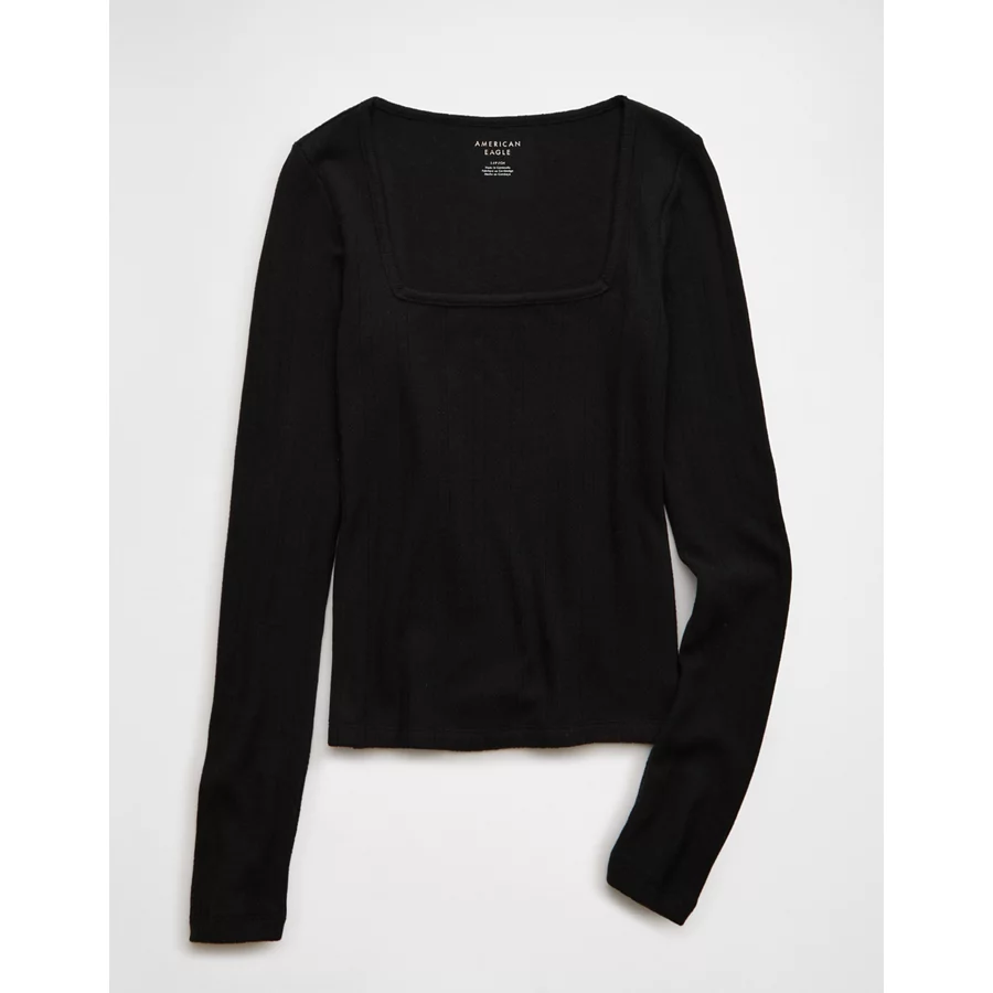 AE Long Sleeve Square Neck T-Shirt – True Black