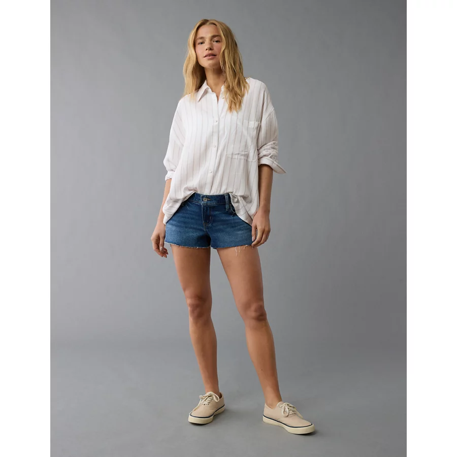 AE 8″ Dreamy Drape Stretch Low-Rise Baggy Jort – Medium Bright Indigo