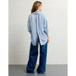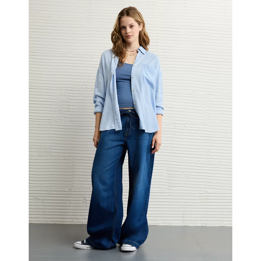 AE Long-Sleeve Tie Back Button-Up Shirt – Sky Blue
