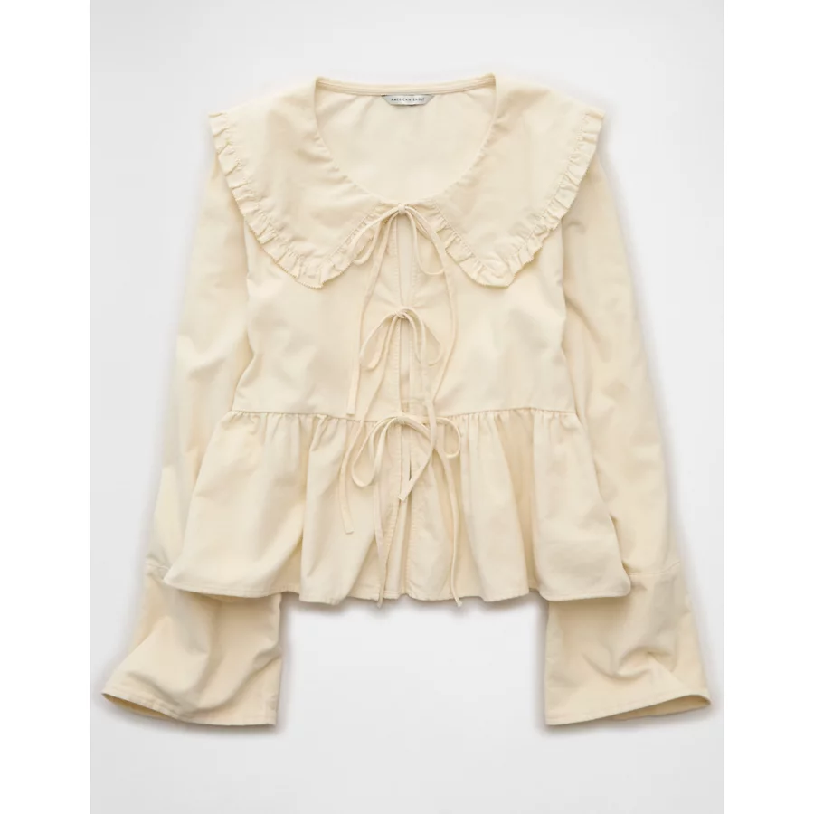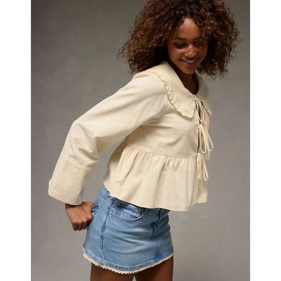 AE 11″ Dreamy Drape Stretch High-Waisted Jort – Light Tinted Wash