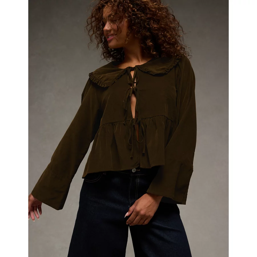AE Long Sleeve Tie-Front Blouse – Olive