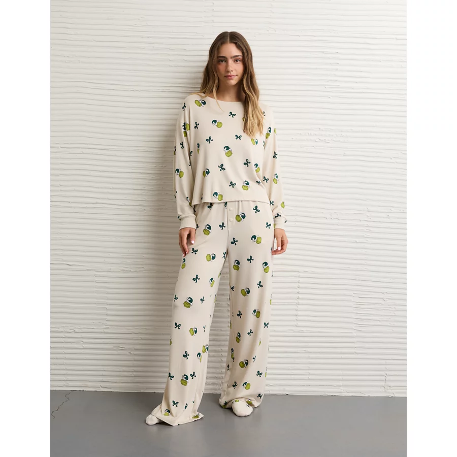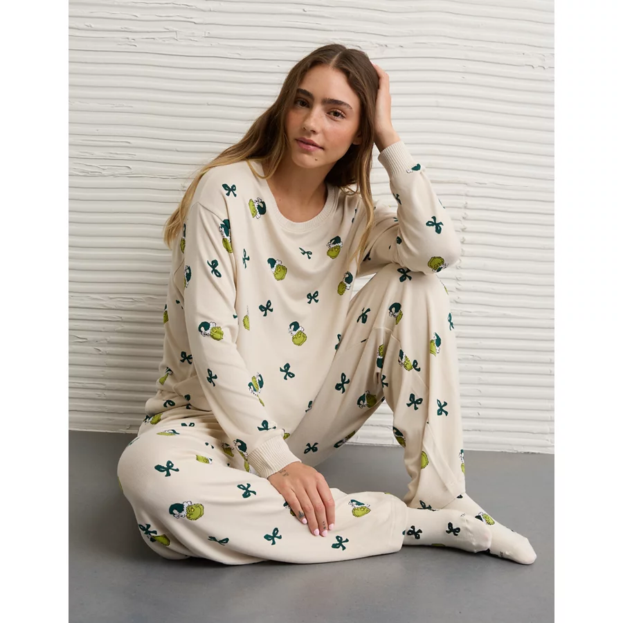AE Luxe Plush Grinch PJ Pant Set – Cream