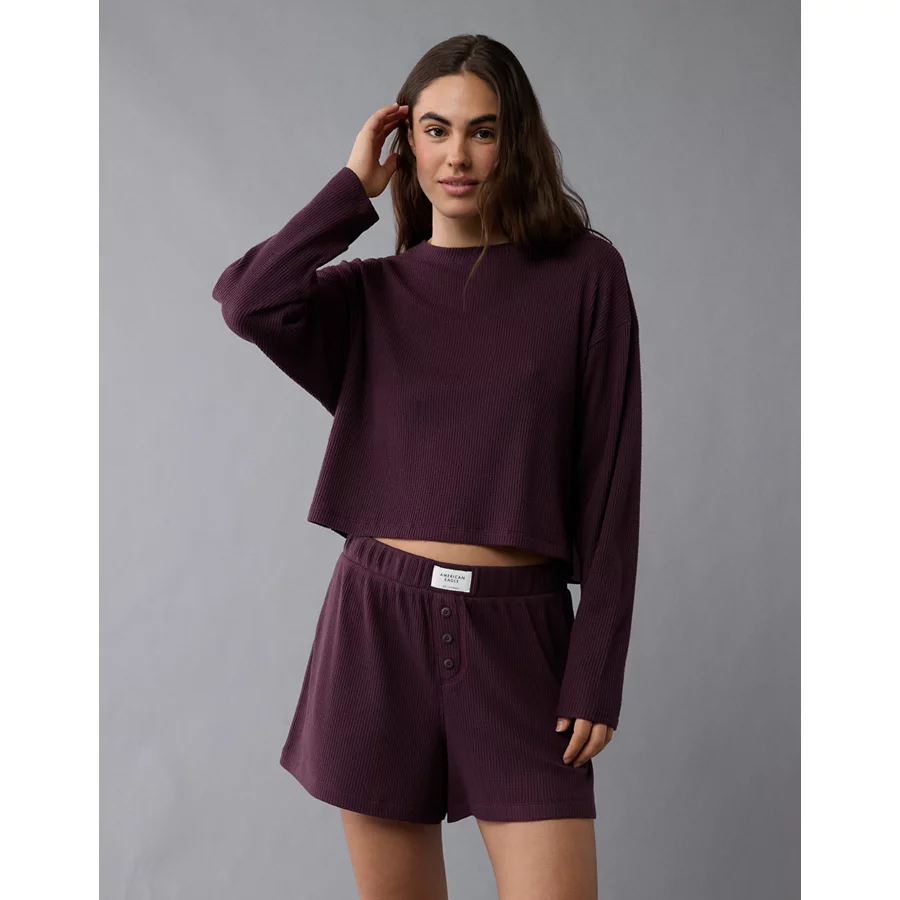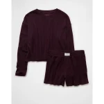 AE Luxe Plush Waffle Tee + Short Lounge Set – Jet Indigo