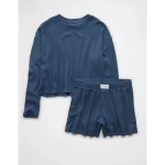AE Luxe Plush Waffle Tee + Short Lounge Set – Navy