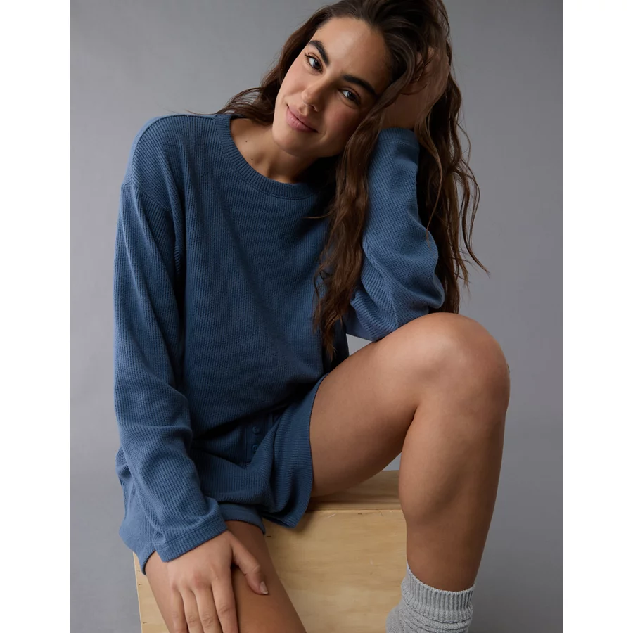 AE Luxe Plush Waffle Tee + Short Lounge Set - Jet Indigo