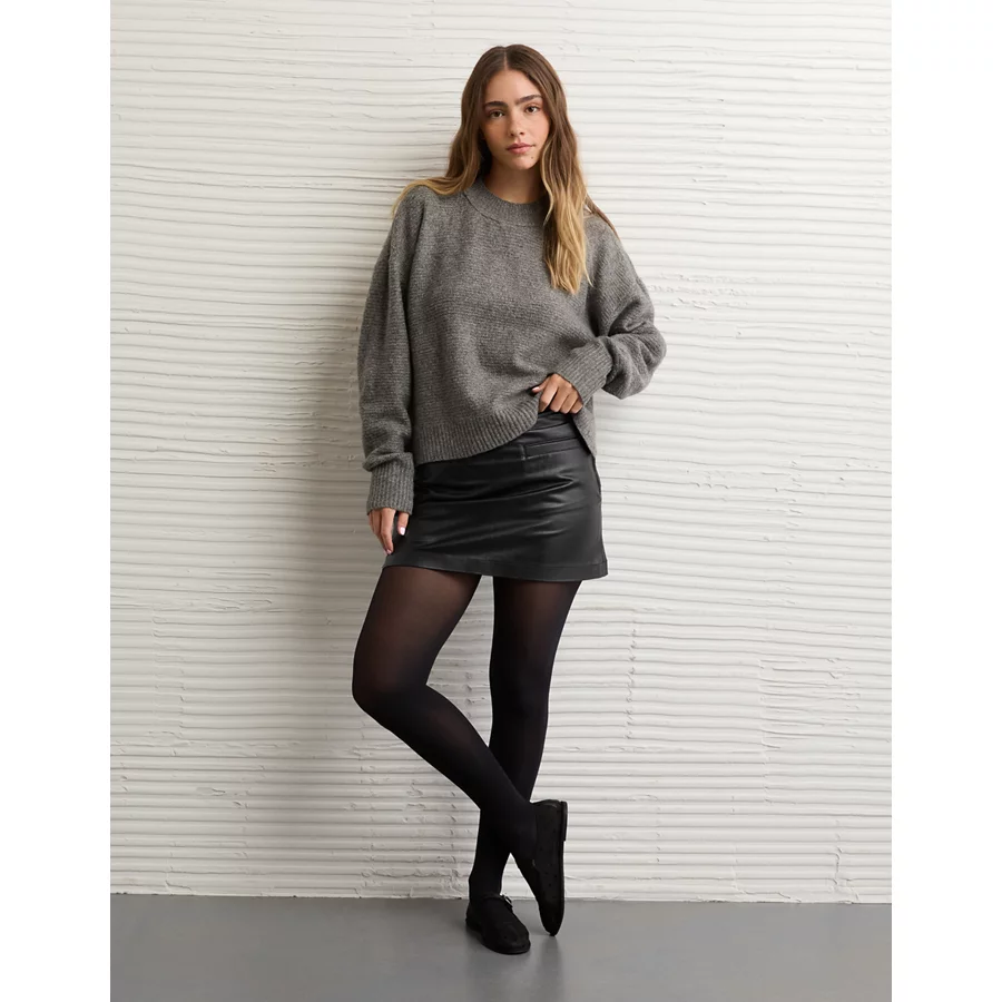 Vegan leather with stretch 96% Polyester, 4% SpandexHand washImported Low rise | 11 3/4 front rise15 inseam28 leg opening