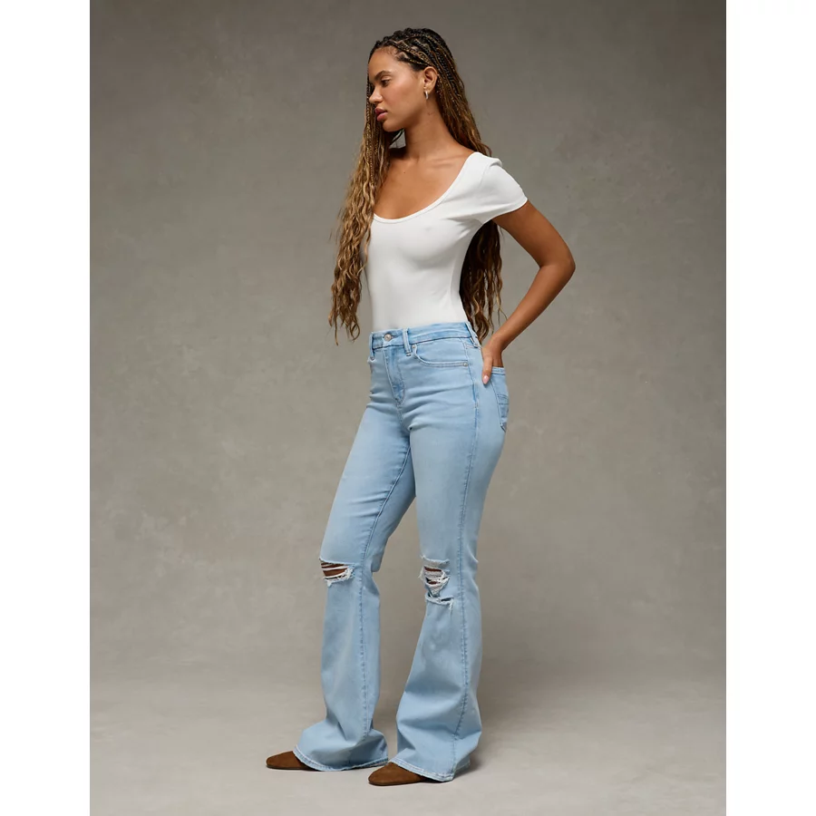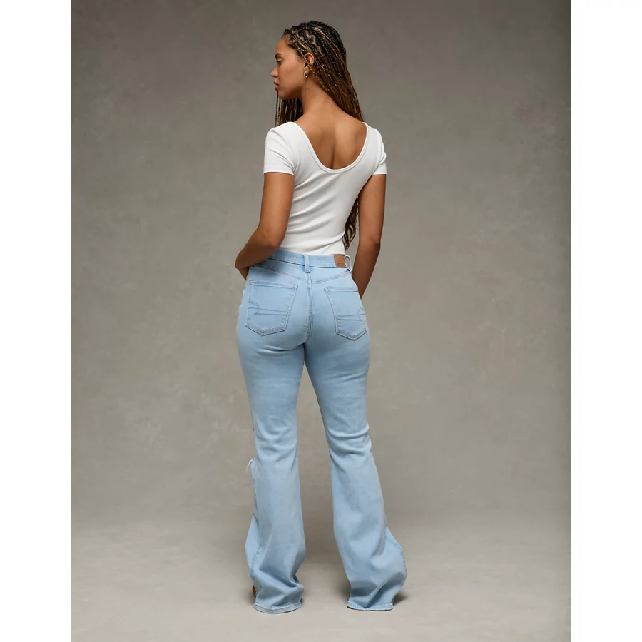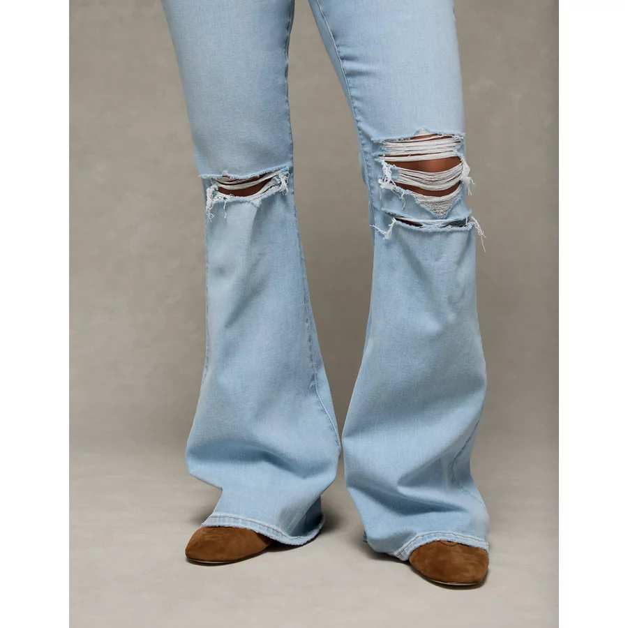 AE Next Level Curvy Ripped Super High-Waisted Flare Jean – Crystal Ice