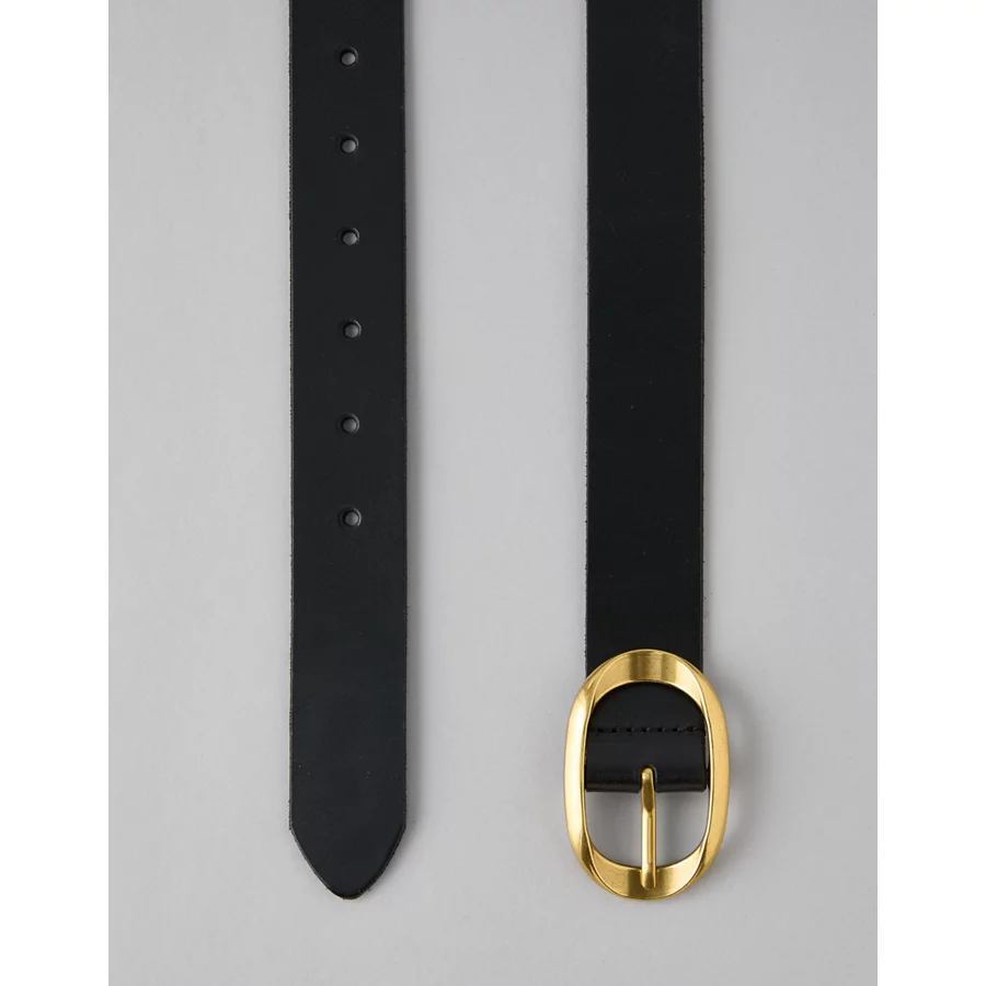 AE Oval-Twist-Buckle Leather Belt – Black