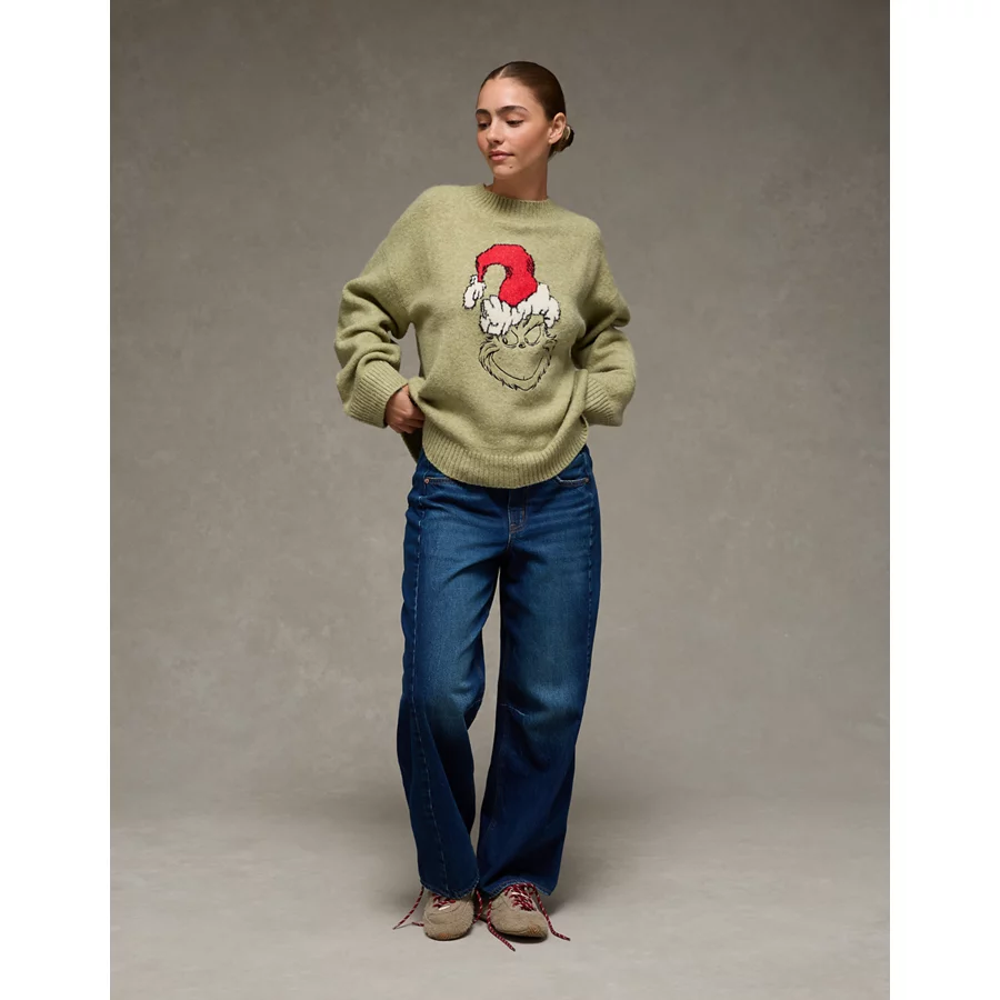AE Oversized Grinch Graphic Sweater – Green