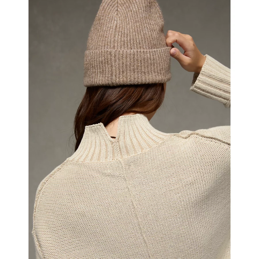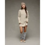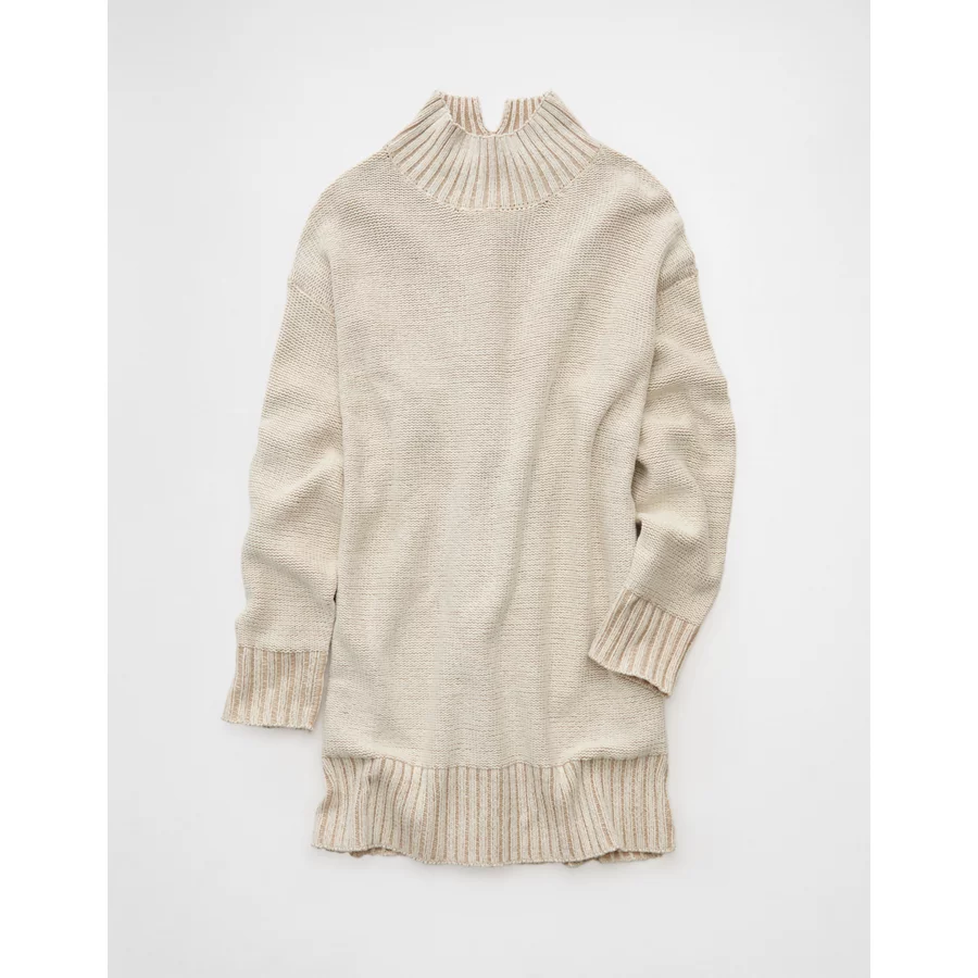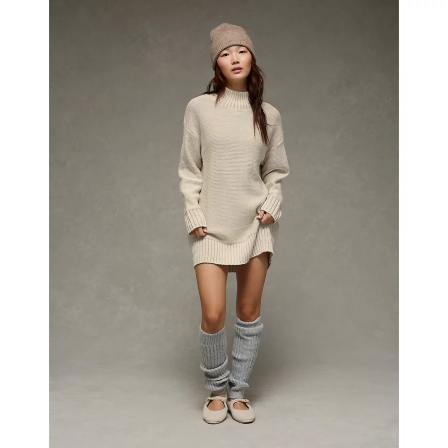 AE Oversized Turtleneck Sweater Mini Dress – Cream